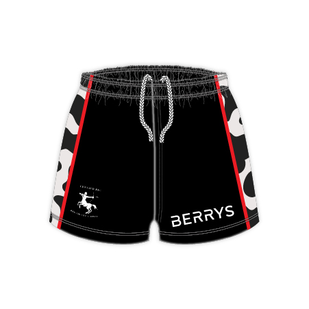 The club’s 2-panel premium rugby shorts, available in waist sizes from 30” (76 cm) to 50″ (127 cm).