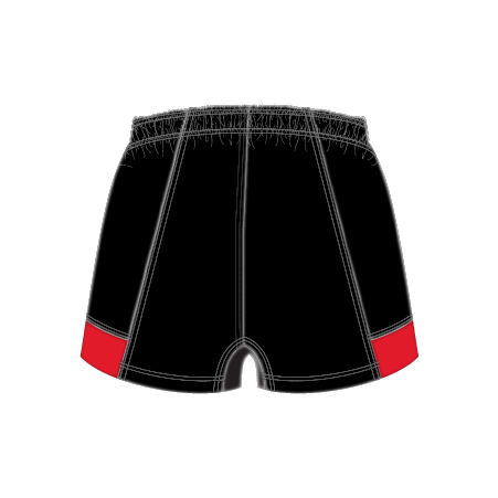 The club’s 9-panel premium rugby shorts with stretch side and crotch panels, available in waist sizes from 22” (56 cm) to 50″ (127 cm). Junior sizes are normally 22″ (56 cm) to 32″ (81 cm).